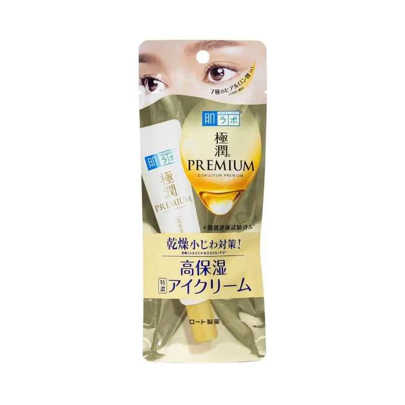 Creme hidratante para área dos olhos. Hada Labo Gokujyun Premium Eye Care foi desenvolvido para prevenção e tratamento de linhas de expressão.